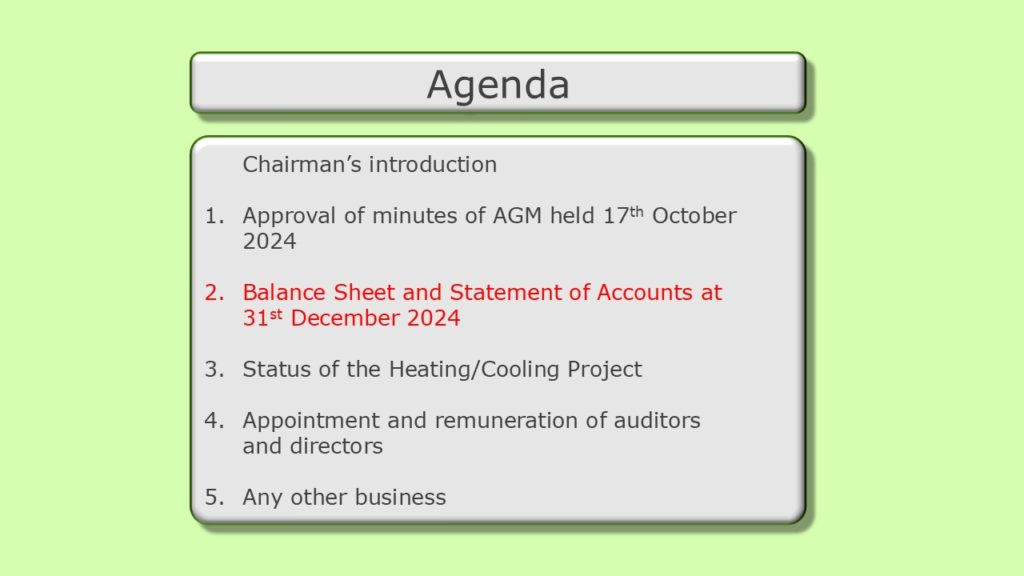 The 2024 accounts closed with a small surplus of £ 58,134, due to lower energy and maintenance costs compared to previous years. This lower cost level is expected to continue in 2026 as we are now benefiting from more favourable contracts on gas and electricity and also lower repair costs as we gradually replace old equipment with new.